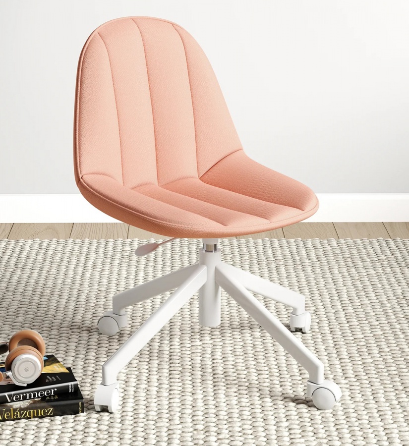 Stylová kancelářská židle potažená lososovou látkou bude dělat radost jak v kancelářích, tak studentských pokojích.