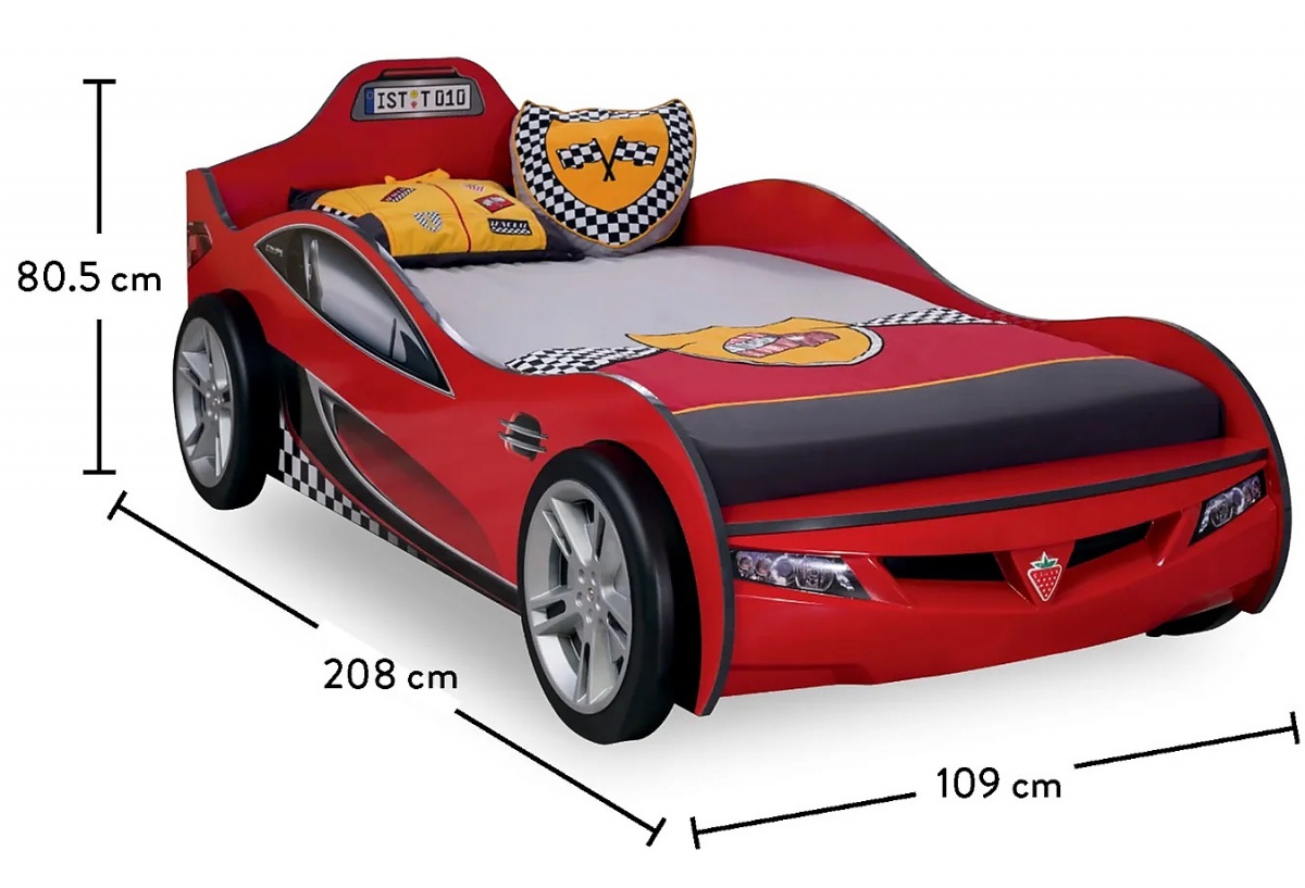 Rozměry postele auto SUPER jsou 109x80x208cm (š, v, h), ložná plocha postele je 90x190cm