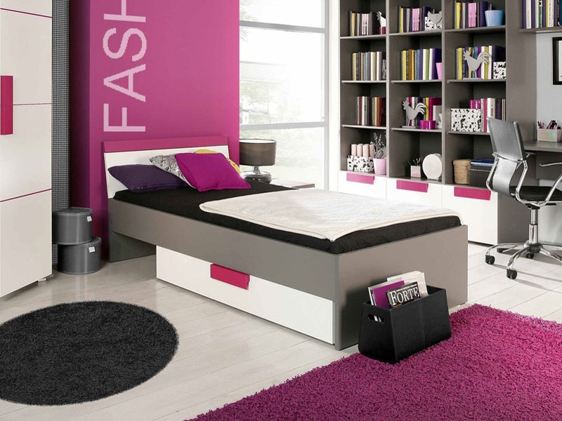 Dětská postel Lobete 90x200cm - šedá/bílá/fialová