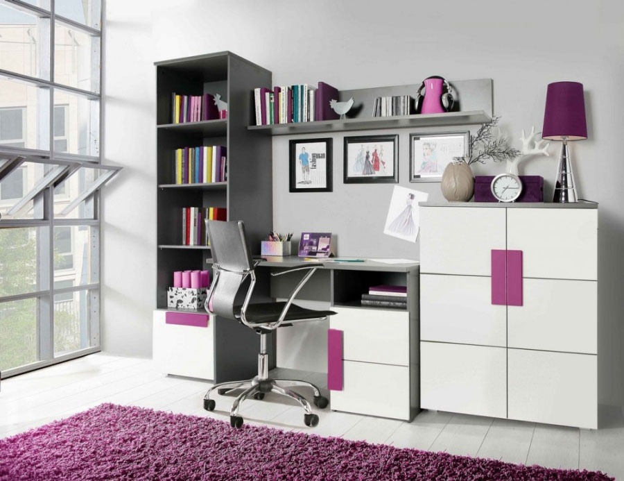 Šuplík pod postel Lobete - šedá/bílá/fialová