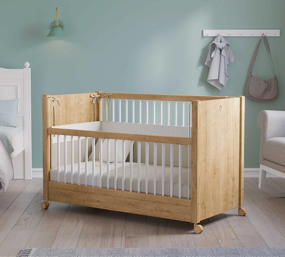 Dětská postýlka 2v1 60x120 s kolečky Azirka - dub