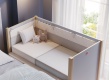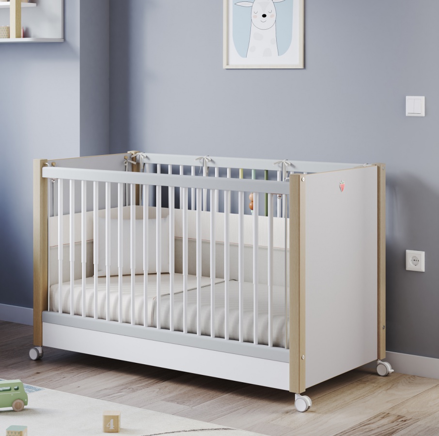 Dětskou postýlku Simba v šedé barvě lze použít jako samostatně stojící dětskou postel či jako přistýlku k manželské loži. Díky čtyřem kolečkám, která mají schopnost se otočit o 360° se velmi lehce stěhuje z jedné místnosti do druhé. Dvě zabržďovací kolečka a zdvižné zábradlí poskytují 100% bezpečí pro Vaše dítě. S deskovým roštem lze volně manipulovat, a tak je možné jej snížit či zvýšit podle Vašich potřeb, díky četné řadě otvorů pro umístění roštu. V roštu jsou umístěny 4 větrací otvory pro lepší cirkulaci vzduchu. Samozřejmostí je i přechodový adaptér díky kterému nevznikne mezi postelemi žádná mezera. Tento praktický produkt je zkrátka nutností pro každého rodiče, který hledá to nejlepší.