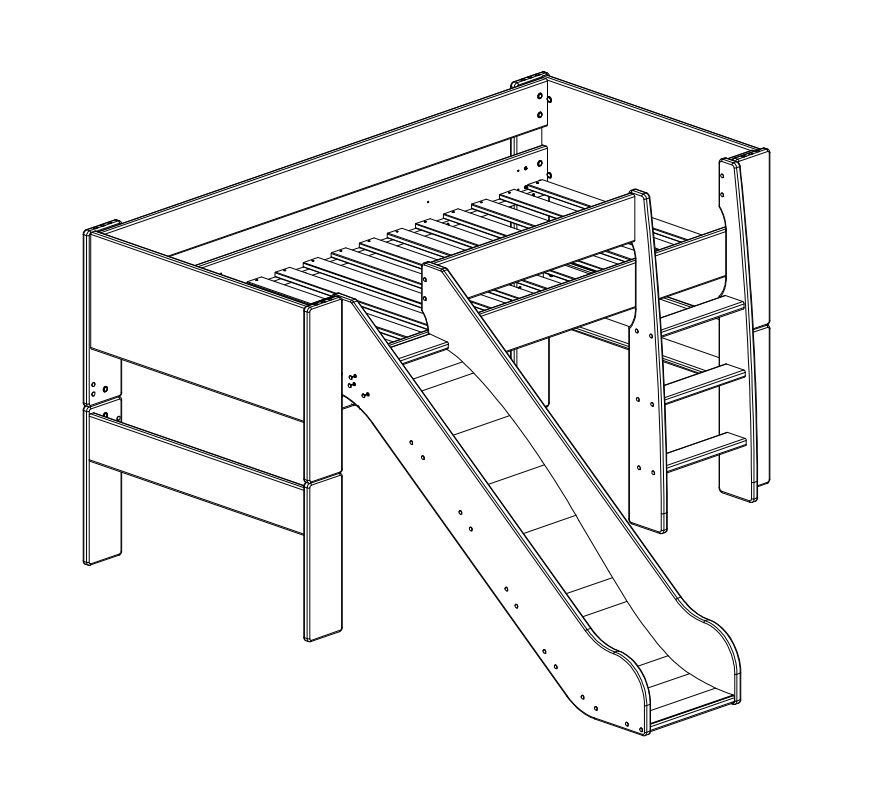 Představujeme vám produkt dánského výrobce - kolekci Dany. Nábytek je určený do dětských a studentských pokojů a pyšní se vysoce kvalitními a přírodními materiály. Vyvýšená postel Dany je vhodná pro školáky. Nejedno dítě má rádo svůj prostor, kde si může hrát, relaxovat a odpočinout si. Vyvýšená postel je vyrobena z MDF materiálu v bílé barvě. Protože je nábytek určený dětem, jsou z bezpečnostních důvodů všechny hrany nábytku zaoblené. Výrazným a velmi lákavým prvkem vyvýšené postele je skluzavka, která dovede děti zabavit a zpestřit jejich hraní. Součástí postele jsou schůdky s dostatečnými nášlapy, laťkový rošt (laťky). Schůdky a skluzavku je možné umístit na pravou a levou stranu postele. Matrace není součástí postele. Doporučit můžeme matrace 90x200cm Relax nebo Klasik Plus, které jsou vhodné do dětských a studentských postelí. Naleznete je níže, v souvisejících produktech. Do vyvýšených postelí Dany je doporučená výška matrace 16 cm. Ložná plocha postele je 90x200cm.