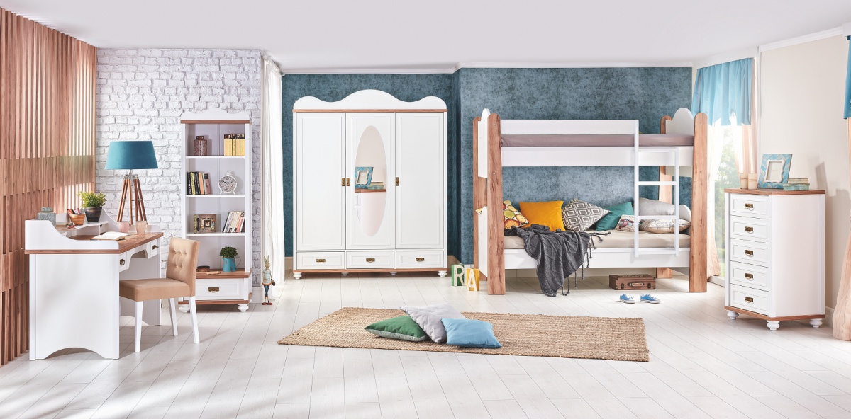 Dětský nábytek z kolekce Lovely má své místo na výsluní díky harmonickému prolínání bílé barvy, dřevěné struktury a linií v retro stylu. Výsledný vzhled je moderní a hřejivý a v pokojíku se neomrzí ani po mnoha letech. Impozantní jsou také ručně vyrobené úchytky a zaoblené nožky. Pohodlí pocítí dítě či teenager zásluhou funkčnosti a snadnému použití. Nábytek je zhotoven z lamina o síle 18mm, povrch je opatřen bílou barvou a v případě imitace dřeva je dekorem ořech.