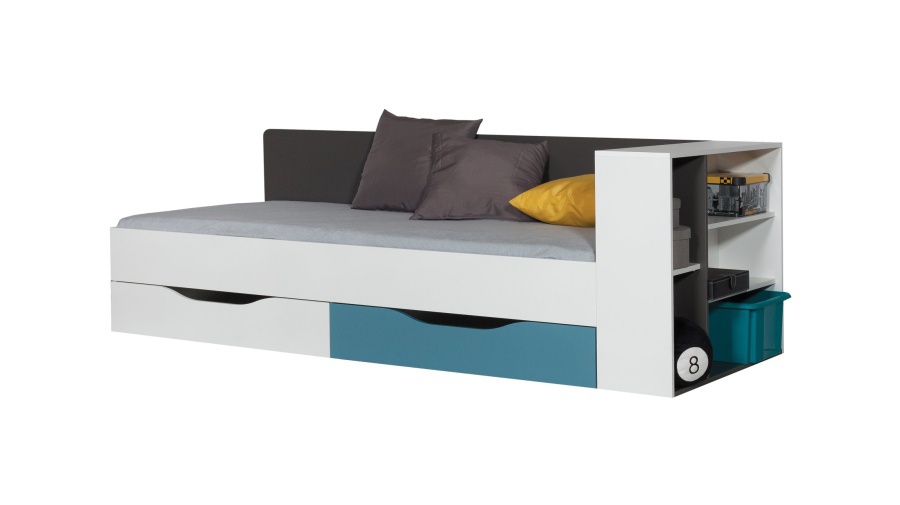 Postel s regálem Tom 90x200cm - atlantic/bílý/grafit