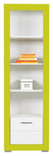 Moderní a líbivá kolekce dětského nábytku Twin je vhodná pro vybavení dívčích nebo chlapeckých pokojů. Regál Twin je vyrobený z kvalitního lamina, kde korpusy nábytku jsou v bílé barvě a zdobné lišty po obvodu v zelené barvě. Regál je vysoký, policový a vespod má vyklápěcí dvířka. Může sloužit jako knihovna, která by v dětském pokoji neměla chybět. Čelní plochy dvířek a šuplíků jsou vyrobeny z MDF desky o síle 16mm a jsou potažené PVC fólií. Jednotlivé díly nábytku jsou opatřeny ABS hranou, která se používá hlavně u více namáhaného nábytku a zároveň nábytek zpevňuje. Nábytek se dodává v demontu. Díky barevné kombinaci je dětský pokoj pestřejší a hleďavější.