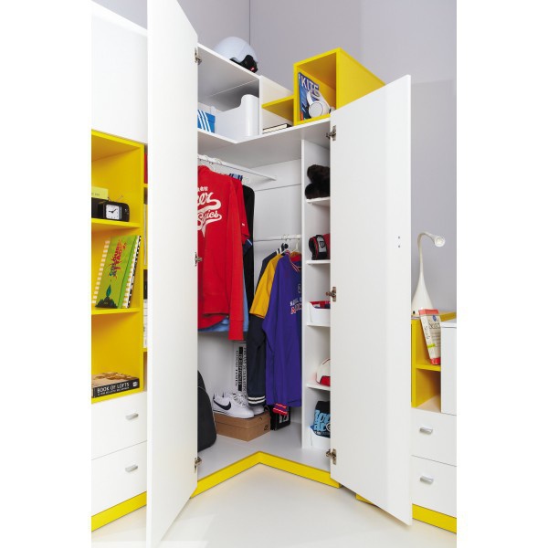 Dětská rohová šatní skříň Moli - Bílý lux/tyrkys