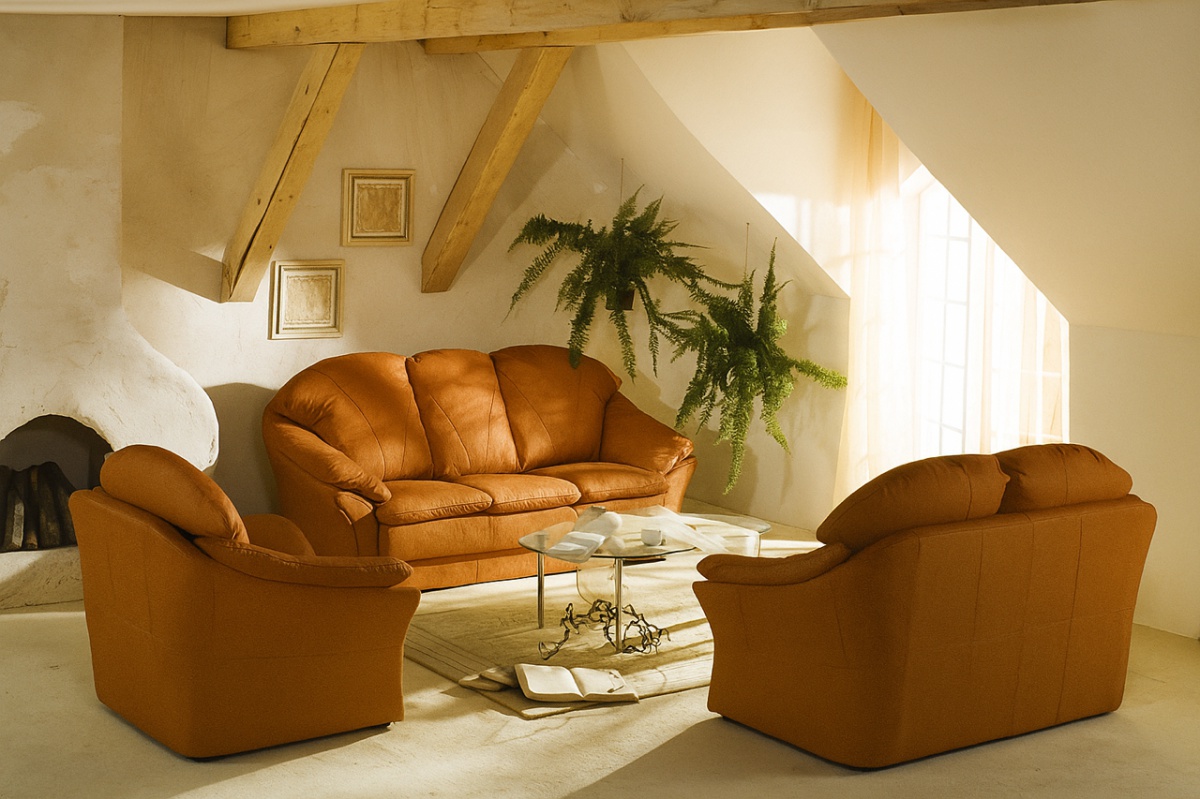 Elegantní dvojsedák Boston, který svým vzhledem a provedením zaručuje luxus a pohodlí. Tento dvojsedák vyrábí značkový výrobce PYKA, který si potrpí na kvalitě a detailech. Dvojsedák je vyrobený z nejkvalitnější pravé kůže v odstínu S41 (oranžová/terakotová). Kožený nábytek je nutné čistit pouze za pomocí speciálních prostředků na čištění a konzervaci přírodních kůží, dřevo je třeba čistit suchým měkkým hadříkem, je možné též používat prostředky na konzervaci a ochranu dřeva neobsahující silikon. Tento dvojsedák můžete doplnit o trojsedák a křeslo.