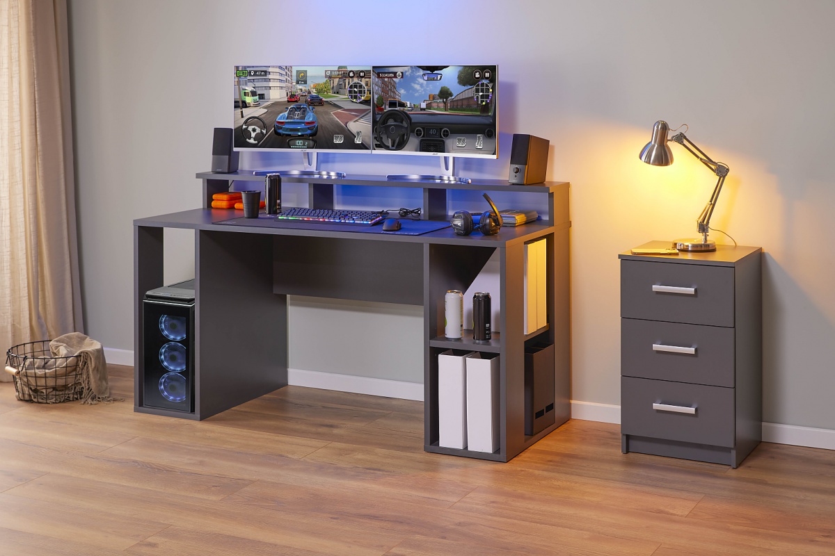 Všichni milovníci počítačových her a vášniví hráči zbystřete! Kolekce Player byla navržena speciálně pro Vás, aby byl každý okamžik strávený u oblíbených her naprosto dokonalý. Nebaví Vás hrát u obyčejného psacího stolu, který neposkytuje dostatek prostoru ani komfortu? S kolekcí Player se Vaše starosti rozplynou jako pára nad hrncem! V kolekci najdete herní stůl s policí na monitory, pojízdný kontejner pro snadné uskladnění všeho potřebného a herní polohovatelnou židli, která Vám poskytne maximální pohodlí i při těch nejdelších herních maratonech.