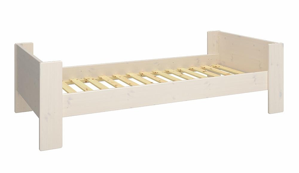Dětská postel vhodná pro děti od předškolního věku až po teenagery, ale samozřejmě ji ocení i dospělí jedinci. Jedná se o klasické jednolůžko ve velikosti 90x200, které je vyrobeno z vysoce kvalitního masivu – v tomto případě se jedná o borovici v běleném odstínu. Součástí postele je pevný laťový rošt, matraci je ale potřeba zakoupit samostatně. Jednolůžkovou postel lze používat samostatně nebo ji zkombinovat se zábranami, šuplíkem pod postel či nástavci pro vyvýšení postele. Nosnost lůžka je 130kg.