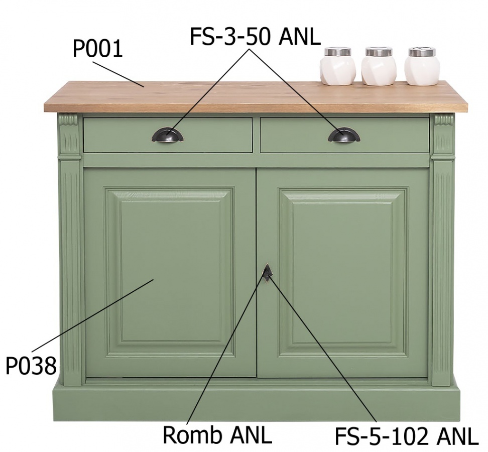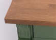 Komoda z masivu v luxusním provedení. Borovicovou konstrukci doplňuje deska z dubového dřeva. Příjemná zelená barva dělá z tohoto kousku opravdu unikátní výrobek. V horní části se nachází dvě úzké zásuvky, pod nimi pak zamykací dvířka se 2 širokými přihrádkami. Z vnější části jsou viditelné ornamenty, které podtrhují rustikální vzhled této kombinované komody. Preferujete-li tradiční provedení a poctivou práci bez kompromisů, pak je pro Vás nesmrtelný masivní nábytek tou pravou volbou. Tento výrobek je doručován ve smontovaném stavu.