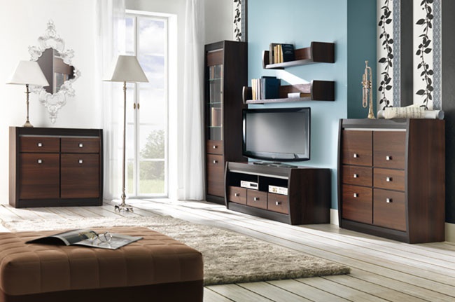 Novinkou na našich stránkách představuje program vhodný do obývacích pokojů a také  ložnic - sestava Forrest. Jde o variabilní program, který nabízí různé typy komod, stolků, skříní, polic, postelí a dalších prvků, které můžete jednotlivě vybírat podle vašich představ a potřeb. Nábytek je vyroben z lamina v kombinaci barev ořech tmavý/dub milano. Program Forrest  nabízí dva typy rtv stolků. Komoda Forrest je 2 dvéřová se  2 šuplíky.
