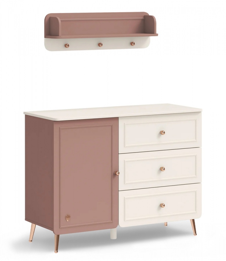 Každý detail této police byl promyšlen s cílem spojit eleganci s funkčností. Béžová a růžová barva vytvářejí jemný a moderní kontrast, který působí uklidňujícím dojmem a přidává vašemu prostoru nádech sofistikovanosti. Celý design je doladěn kovovými háčky ve zlaté barvě, které dodávají polici luxusní nádech.