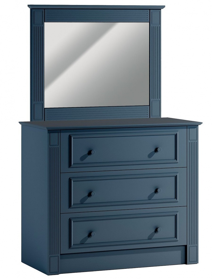 Nástěnné zrcadlo Amaya v elegantní tmavě modré barvě kombinuje čistý design s promyšlenou funkčností pro každodenní pohodlí.
