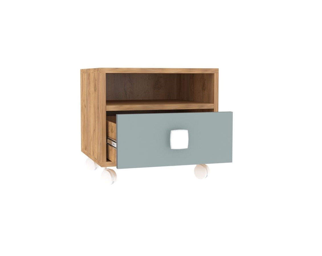 Chcete večer mít vše po ruce a nemuset tak vstávat z vyhřáté postele? Odložte své věci na noční stolek Ezra, který poskytne odkládací a úložnou plochu. Kombinace dubu zlatého a modré barvy je velmi originální a atraktivní.