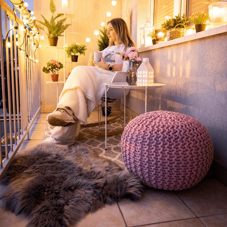 Pletený taburet, pudrová růžová bavlna, GOBI TYP 1