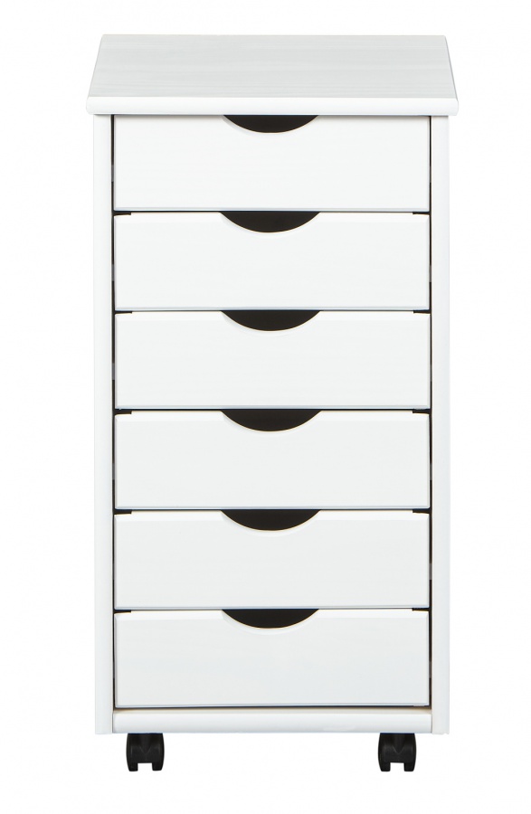 Vysoký kancelářský kontejner z borovicového dřeva je zárukou kvality a maximální funkčnosti. Kontejner je opatřený šesti prostornými zásuvkami. Díky úchytkám s půlměsícovým výkrojem se zásuvky snadno otevírají. Pevná kolečka zajišťují snadnou a rychlou manipulaci. Povrch kontejneru byl ošetřen bílým lakem, skrz který je lehce viditelná kresba dřeva.
