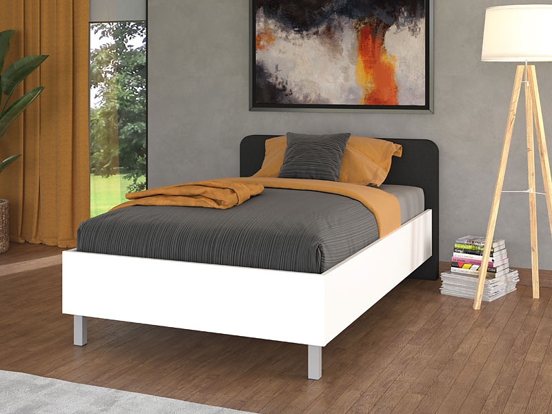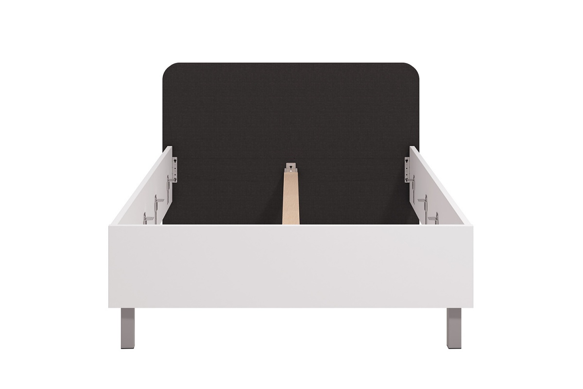 Postel ve velikosti 120x200 zaujme především díky svému čalouněnému čelu, které je pokryté černou látkou. Ta fantasticky ladí s bílou barvou a dohromady tvoří skvělou kombinaci. Nožky postele v šedé barvě tuto postel skvěle ozvláštňují. Díky vysokým širokým nožkám se při úklidu lehce dostanete pod postel. Součástí postele je středová deska se zpevňujícími nožkami. Postel je dodávána bez roštu a bez matrace, vhodné typy naleznete níže v souvisejících produktech. Pro nejvyšší pohodlí doporučujeme zakoupit laťový rošt ve velikosti 120x200. Výšku roštu je možné si dle svých preferencí zvýšit či snížit.