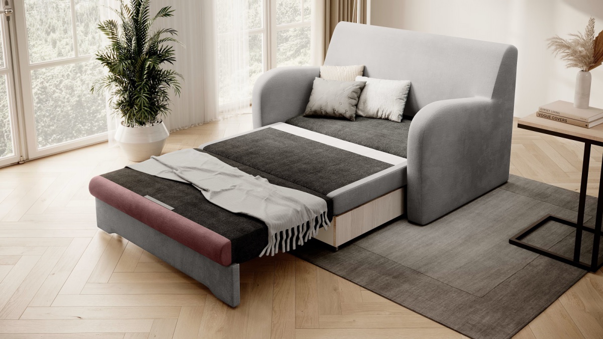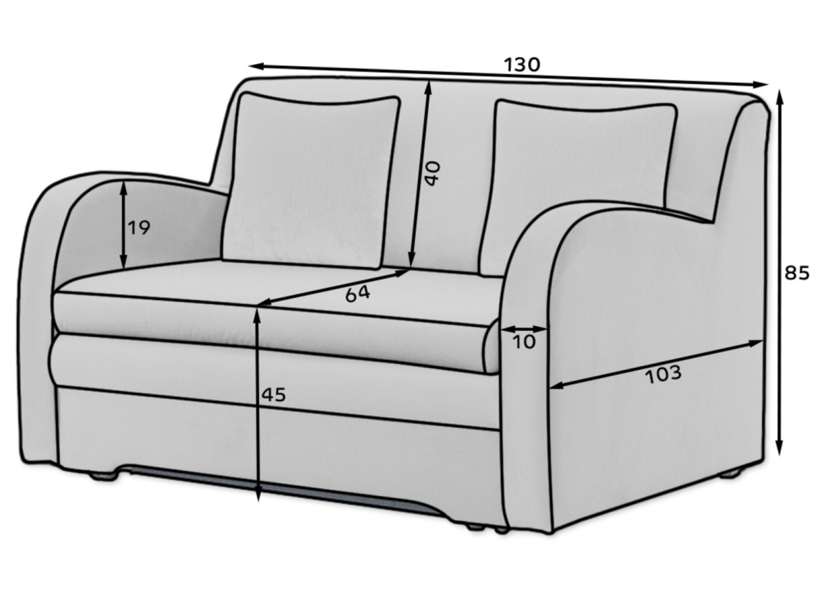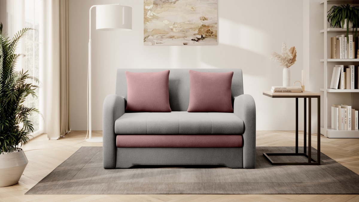 Rozkládací pohovka Adriana je chytrá dvoumístná pohovka do menších prostor, která šetří místo a neztrácí na komfortu. Šířka 130 cm, výška 85 cm a hloubka 103 cm z ní dělají ideální volbu do garsonky, bytu pro studenty, pracovny i pokoje pro hosty. Sedák se šířkou 111 cm, výškou 45 cm a hloubkou 64 cm pohodlně usadí dvě osoby s celkovou nosností 160 kg.
