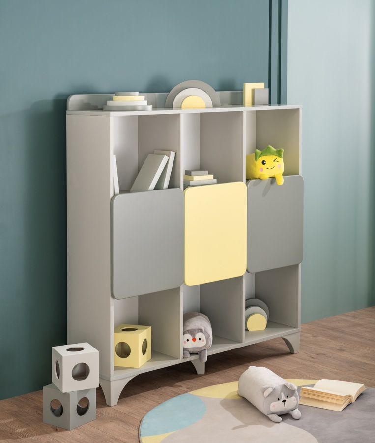 Skříňka na hračky Raundo poskytuje dostatek místa pro ukládání oblíbených hraček, knih i osobních drobností. Kryté přihrádky a otevřené police umožňují udržet dětský pokoj přehledný a organizovaný. Police unesou až 25 kg a lze je dle potřeby vyjmout nebo přemístit, takže se skříňka snadno přizpůsobí měnícím se potřebám dítěte. Brzděné panty zajišťují tiché a bezpečné zavírání dveří bez rizika přivření prstů.