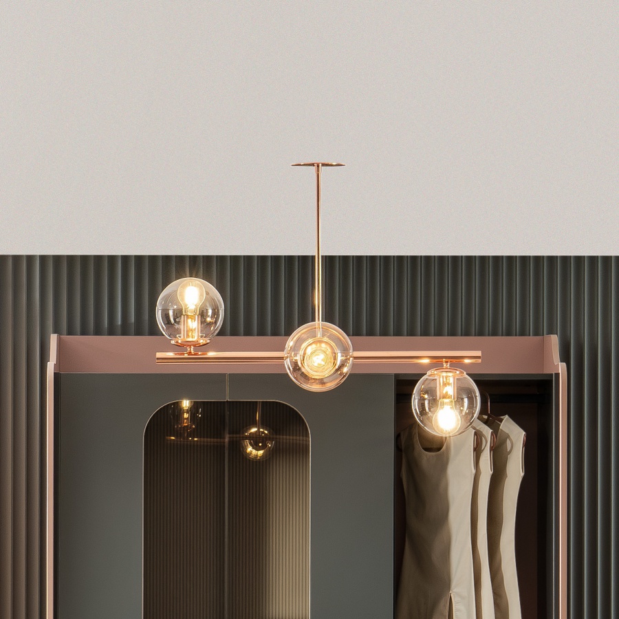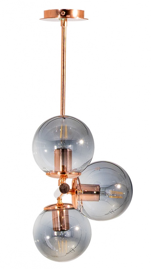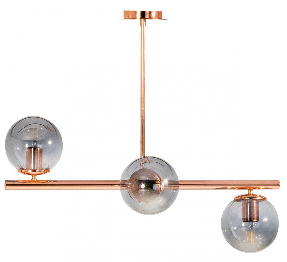 Stropní světlo Khalisa v odstínu růžového zlata s trojicí kouřově tónovaných čirých skleněných koulí dodá interiéru elegantní akcent a příjemně tlumené světlo. Ideálně zapadne do každé ložnice, pokoje, nebo kosmetického koutku.