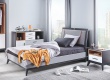 V čele postele se nachází textilní čalounění se 2 dekorativními pruhy ve skořicové barvě. Z každé strany čela nalezneme úložný prostor ve formě poliček, který lze využít na odkládání veškerých nezbytností, které u postele nesmí chybět. Další vychytávkou je dotykové osvětlení a USB kabel, obojí je již zabudováno v konstrukci. Rošt postele je deskový, v případě zájmu lze však dokoupit rámový laťový rošt. Postel dodáváme bez matrace a je nutné ji dokoupit, v případě deskového roštu doporučujeme zvolit matraci pružinovou, latexovou či pěnovou s lepším odvětráváním.