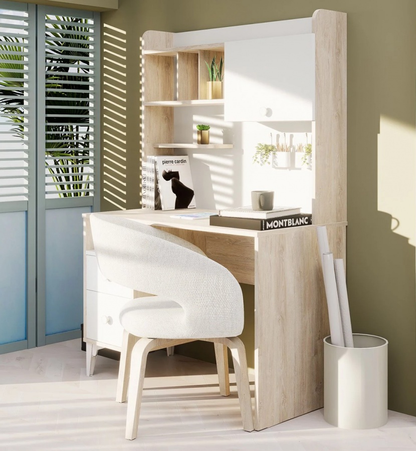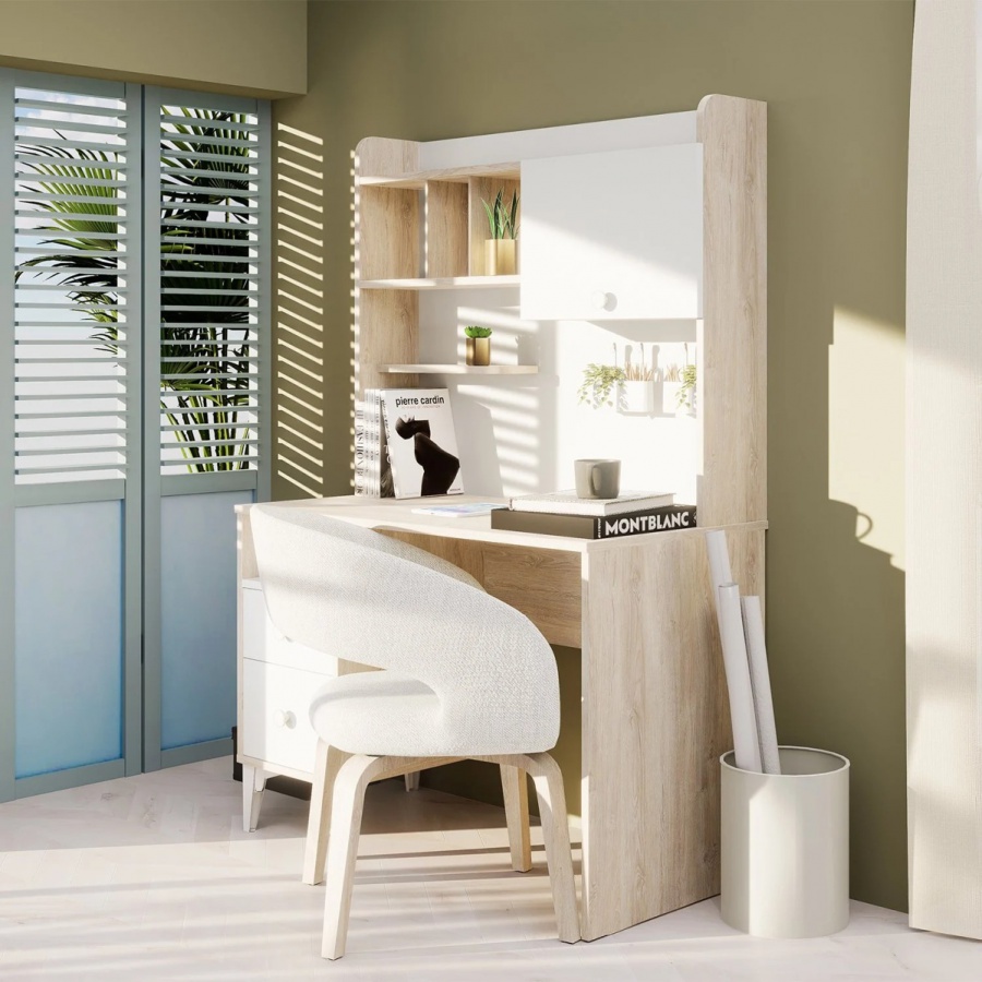 Psací stůl s knihovnou Kaylla - dub sofia, bílá
