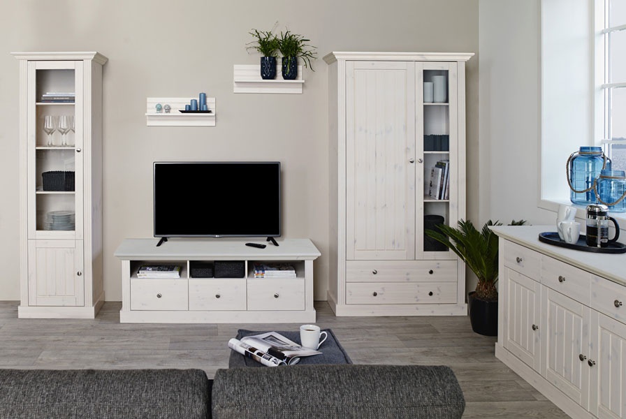 Pro milovníky masívního nábytku představujeme kolekci Monako, která má design venkovského stylu a je vhodná pro vybavení obývacích pokojů, jídelen nebo ložnic. Jde o produkt dánského výrobce, který se zaměřuje na výrobu nábytku z masivu. Televizní stolek Monaco je vyroben z dánské borovice v bílé barvě. Jeho součástí jsou přihrádky a 3 zásuvky, díky kterým můžete umístit přehrávače a jiné tv doplňky podle vašich představ. Bílá barva prostor prosvětlí a zjemní.