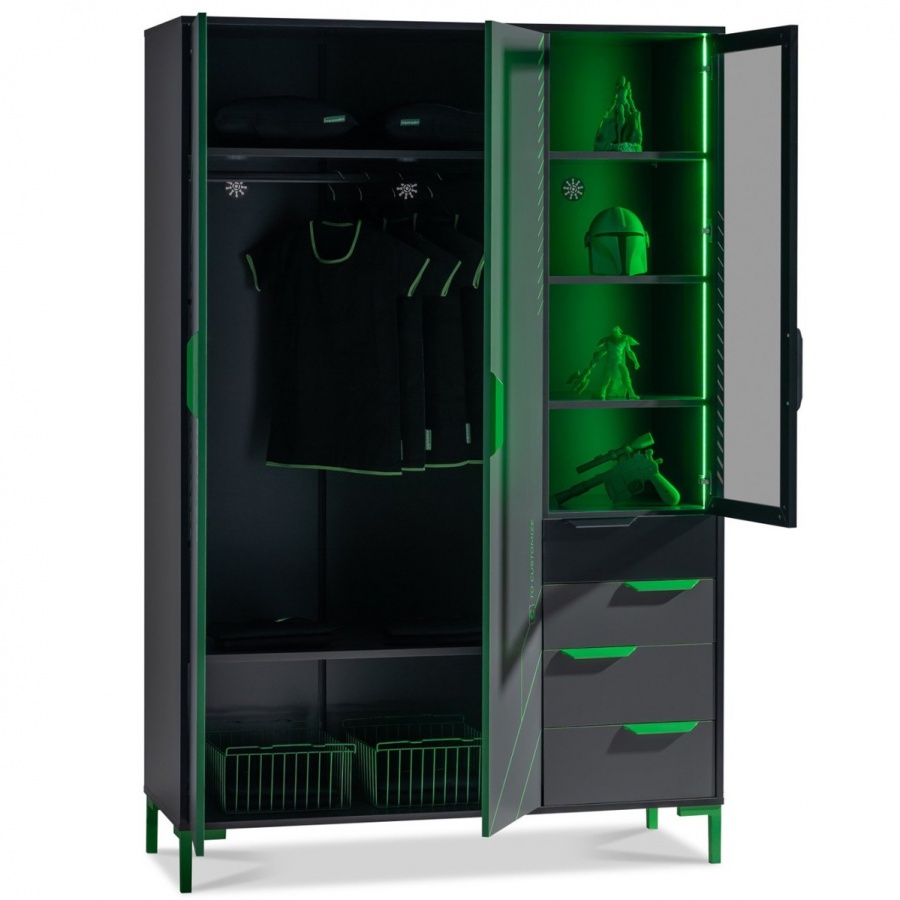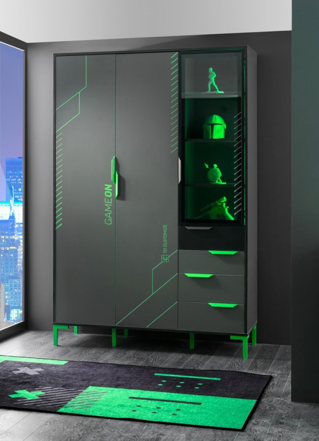 Vylepšete svůj herní zážitek s nábytkem pro herní pokoj Diego! Integrované LED osvětlení a odolné povrchové úpravy dodávají vašemu prostoru futuristický vzhled, zatímco promyšlené úložné řešení zajistí, že vše bude mít své místo. Objevte dokonalou kombinaci stylu a funkčnosti například s třídveřovou skříní, která skvěle doplní váš prostor.
