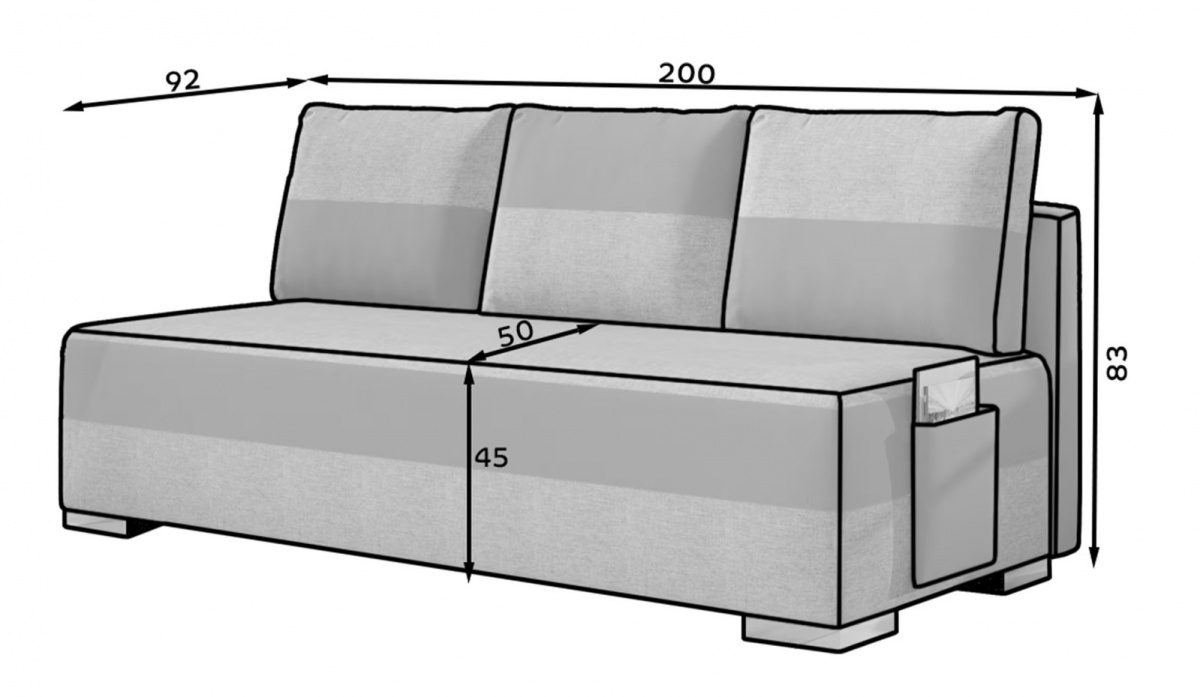 Praktickou stránku podtrhuje velkorysý úložný prostor na ložní prádlo, přístupný pomocí spolehlivého mechanismu DL, a také boční kapsa umístěná na jedné straně pohovky pro drobnosti, které chcete mít vždy po ruce. Samotné rozkládání je rychlé a intuitivní – během chvilky vytvoříte rovnou, stabilní a dostatečně prostornou plochu na spaní.