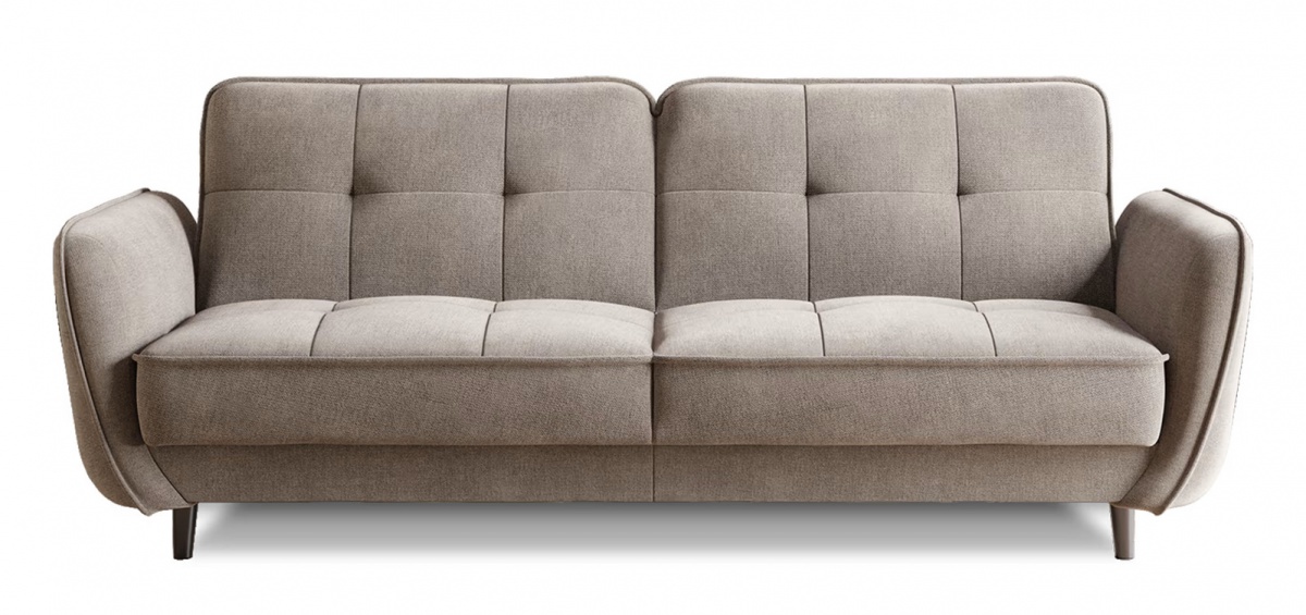 Beatrice je připravena na každodenní relax i příležitostní spaní. Mechanismus klik‑klak (click‑clack) umožňuje plynule a rychle rozložit sedák a opěradlo do lůžka o rozměrech 190 × 110 cm, aniž by bylo nutné pohovku odsouvat od zdi. Integrovaný úložný prostor poskytne praktickou přihrádku na ložní prádlo, polštáře či přikrývky, což oceníte v bytech, kde je každý centimetr navíc k nezaplacení.