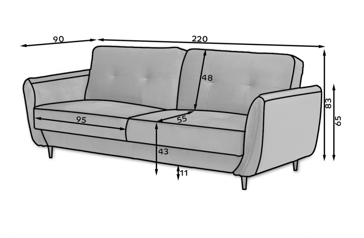 Dopřejte si komfort a styl s trojmístnou rozkládací pohovkou Beatrice, která elegantně spojuje nadčasový vzhled a současný design. Díky promyšleným proporcím o šířce 220 cm, výšce 83 cm a hloubce 90 cm se skvěle hodí do středně velkých i menších studentských pokojů, kde navíc 11 cm vysoké dřevěné nohy v odstínu hnědého dřeva opticky odlehčí prostor a umožní snadný úklid pod nábytkem.