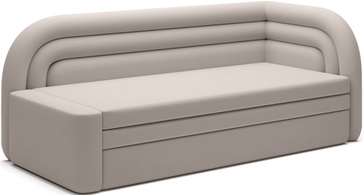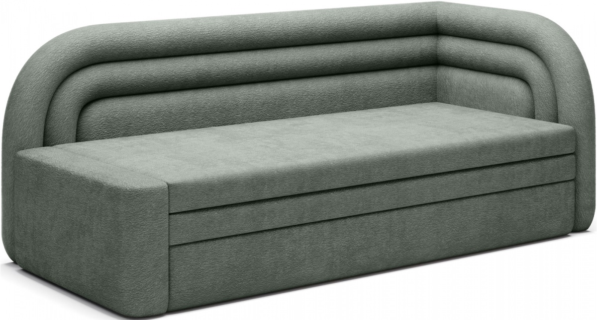 Styl: moderní. Čalounický materiál: polyester. Skládací mechanismus: na kolečkách. Materiál rámu: dřevo (borovice). Výplň sedáku: pěna T2540. Výplň opěradla: polyuretanová pěna T2130 + nadýchaná netkaná textilie. Úložný prostor: ano.