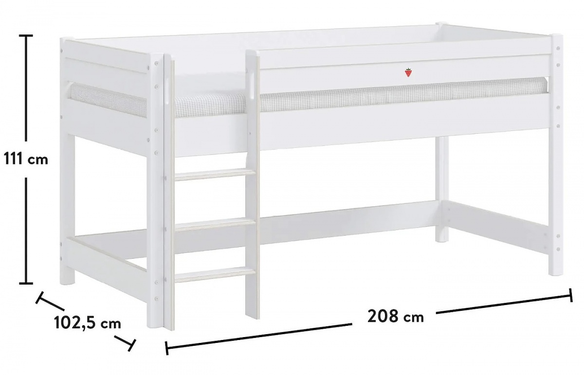 Rozměry vyvýšené postele Fairy jsou 102,5x111x208cm (š, v, h).