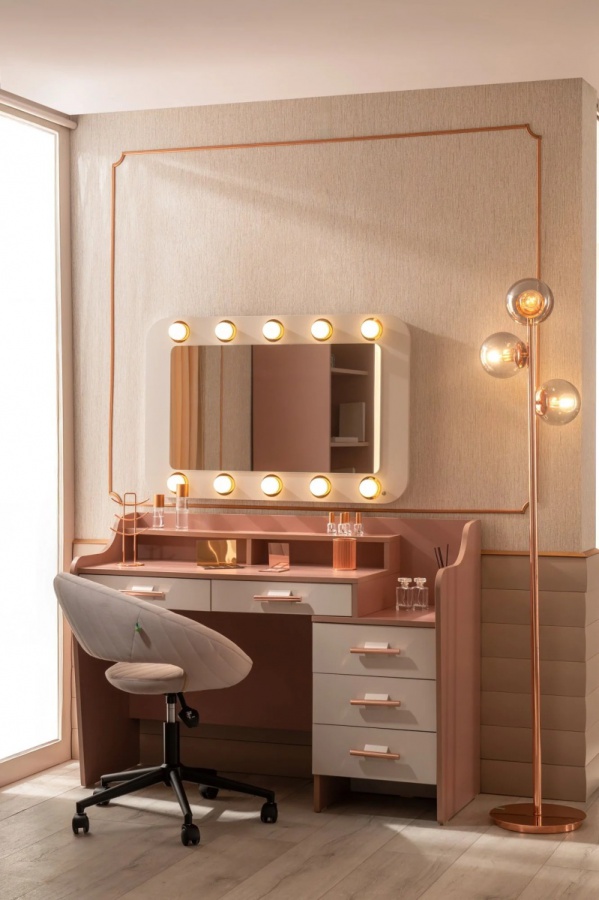 Osvětlené nástěnné zrcadlo Viviana v růžové barvě přináší do vašeho interiéru svěží ženský nádech a glamour atmosféru. Inspirováno stylovými maskérnami a make-up studii, zrcadlo Viviana vás obklopí jemným, ale intenzivním světlem díky žárovkám rozmístěným po jeho obvodu. To zajistí perfektní podmínky pro líčení, úpravu vlasů nebo jakýkoli beauty rituál. Doporučujeme použít žárovky s paticí E27 pro ideální jas.